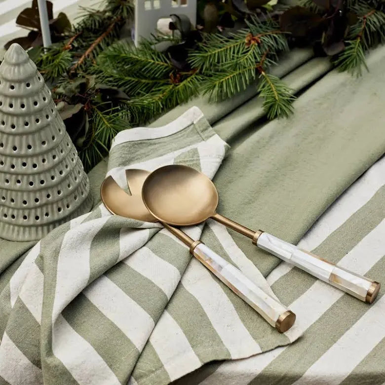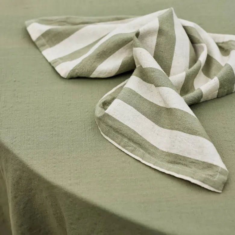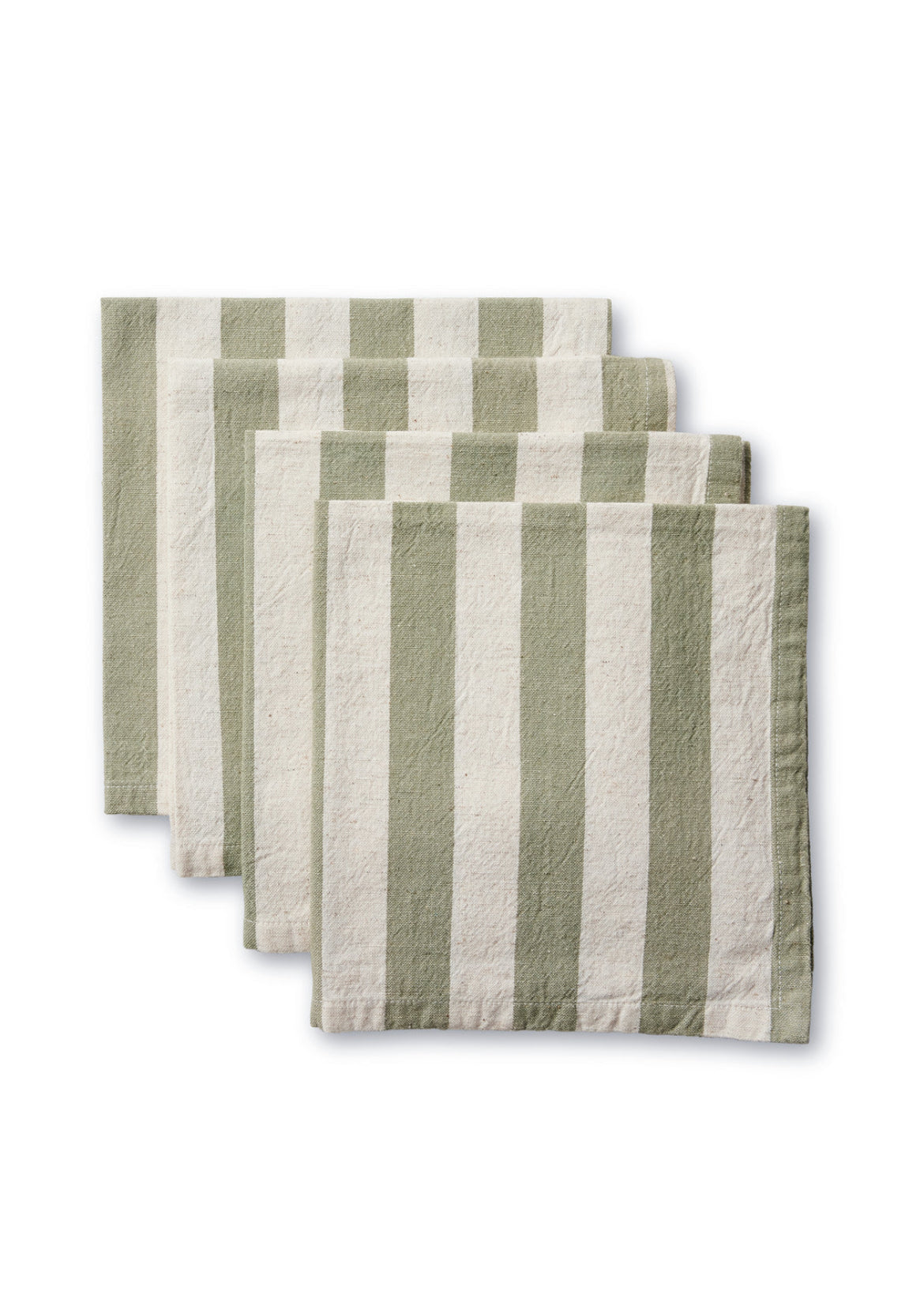 Complete your table setting with the Estelle Green Stripe Napkin Set. Featuring a green stripe design on an cream cotton slub base, these napkins add a natural elegance to any meal.