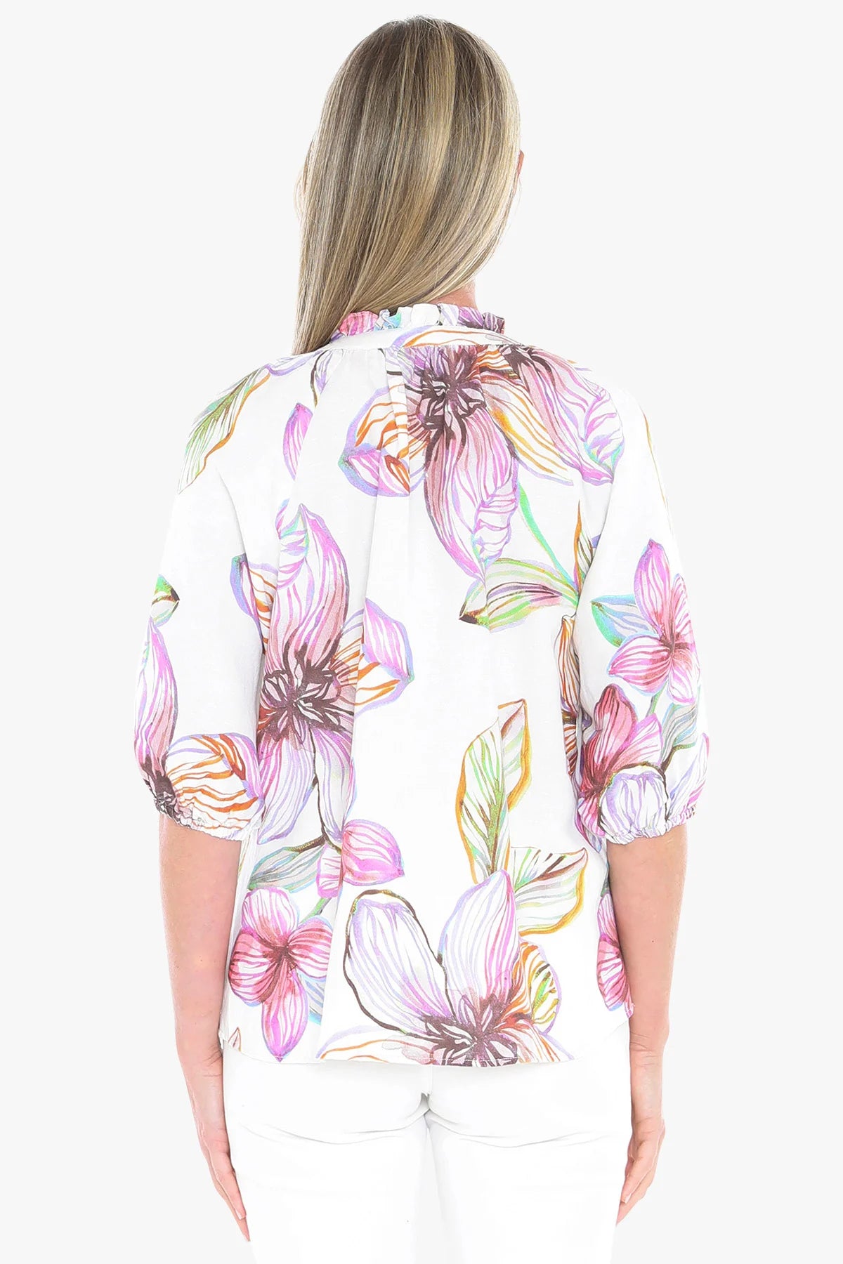The Floraline Top features a bold floral print that adds a vibrant touch to any wardrobe.
