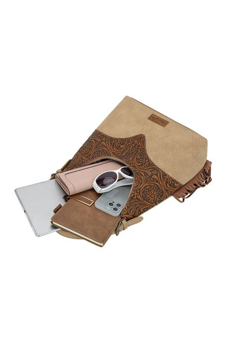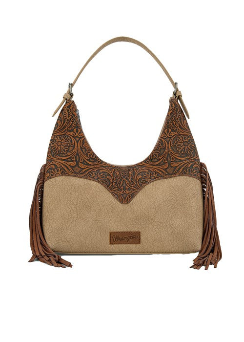 Wrangler Tooled Fringe Shoulder Bag - Camel/Tan